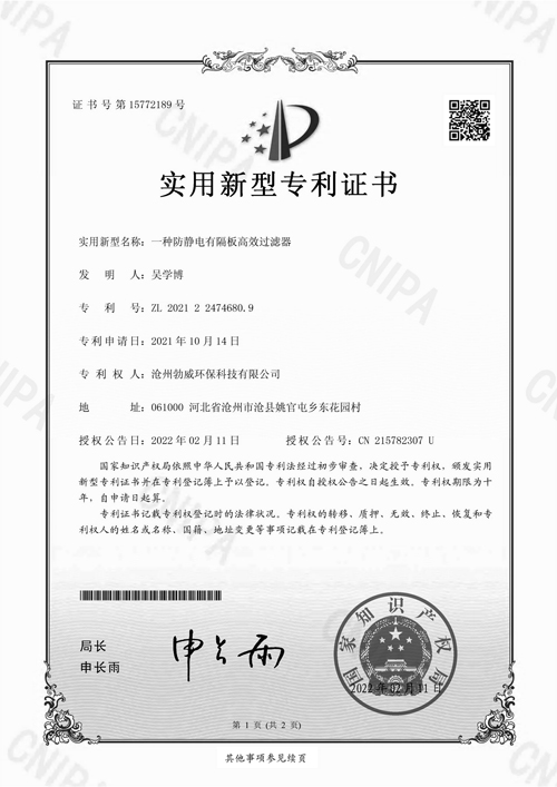 • 防靜電有隔板高效過(guò)濾器專利
